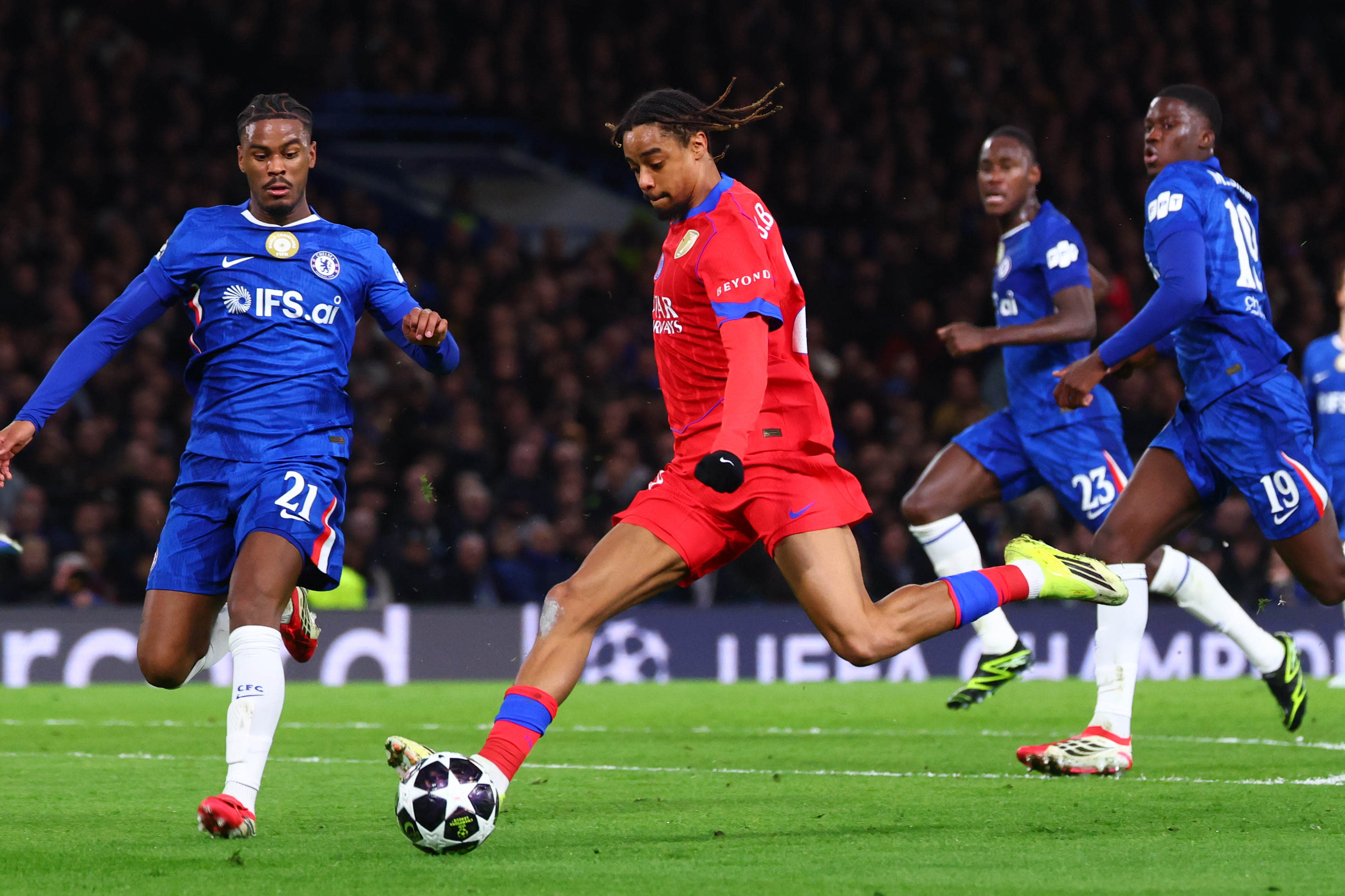 Découvrez les chiffres et faits marquants de la victoire et la qualification du Paris Saint-Germain en quart de finale de l’UEFA Champions League après la victoire 3-0 à Stamford Bridge.