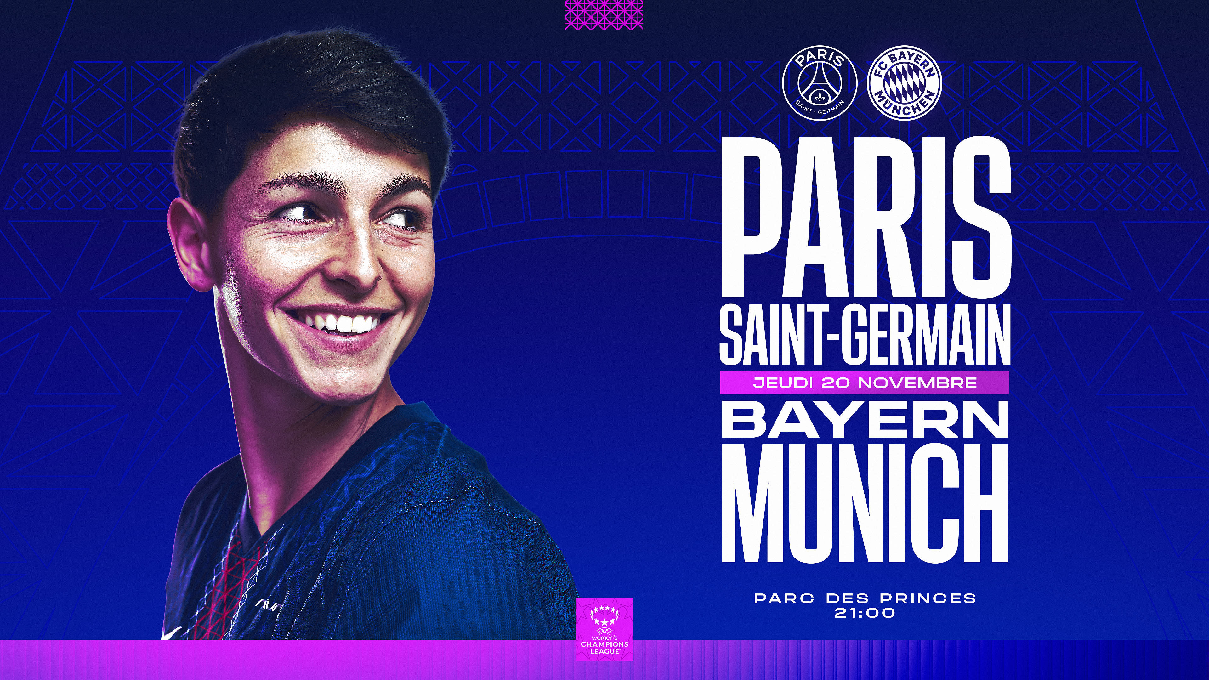 L'équipe féminine du Paris Saint-Germain affronte le Bayern Munich ce jeudi 20 novembre 2025, dans le cadre de la 4e journée de l'UEFA Women's Champions League. Au Parc des Princes, nos joueuses auront besoin de tout votre soutien pour l'emporter !
